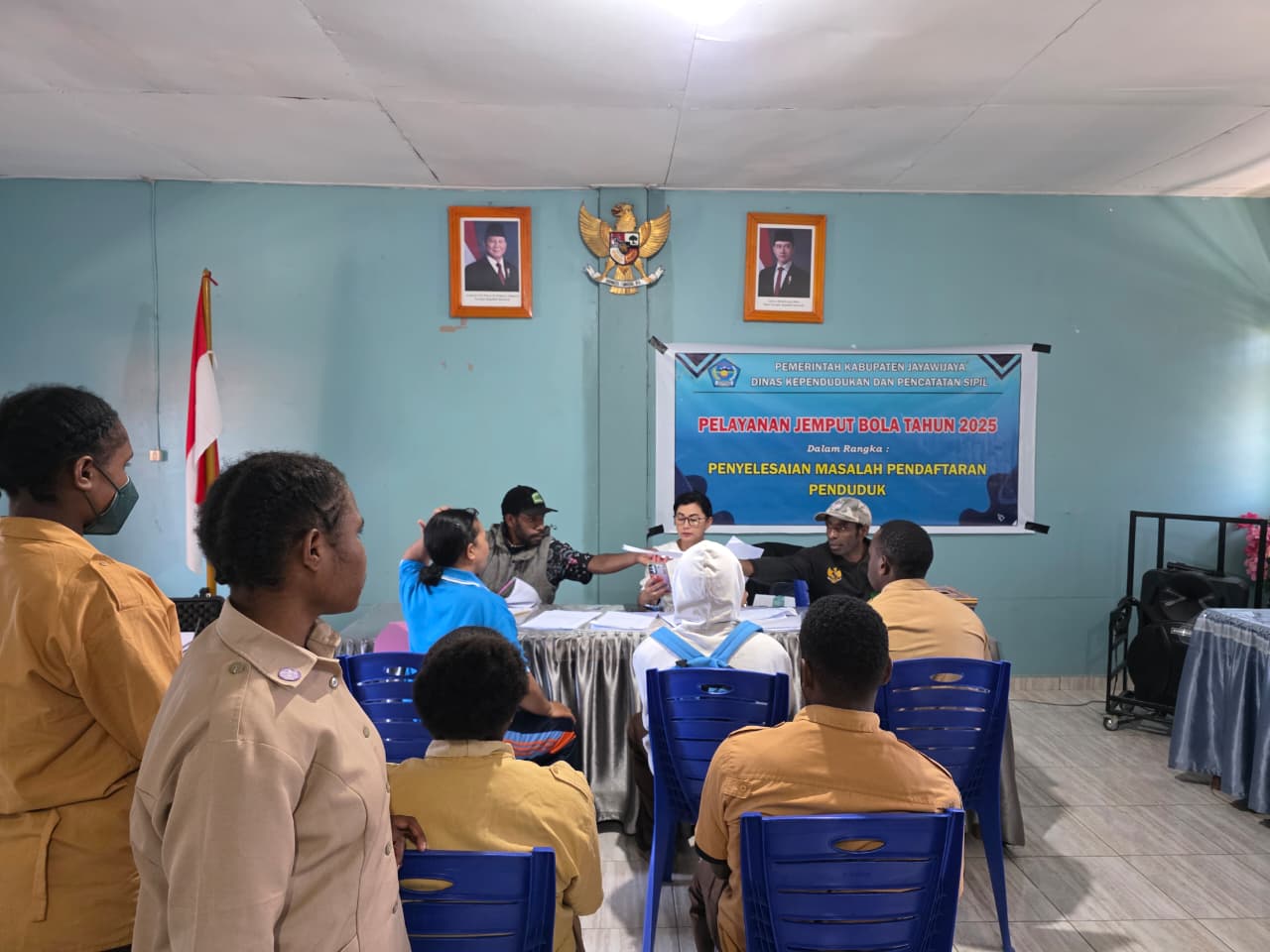 Wamena — Dinas Kependudukan dan Pencatatan Sipil Kabupaten Jayawijaya kembali melaksanakan kegiatan pelayanan jemput bola administrasi kependudukan, sebagai bagian dari upaya mempercepat penyelesaian permasalahan pendaftaran penduduk dan perluasan akses layanan kependudukan. Kegiatan ini dilaksanakan di lingkungan SMA PGRI Kabupaten Jayawijaya dan diikuti oleh para guru, siswa, serta tenaga kependidikan.